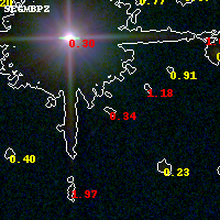 Object #710 x,y = (1352, 2438) RA, Dec = (01:43:01.248, 44:37:59.52) = (25.75520, 44.63320) BPZ = 0.336 [0.143--4.259] type = 8.20 (SB1_B10 - SB2_B10) chisq2 = 1.09 ODDS = 0.07 z_cluster = 0.341