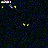 Object #720 x,y = (3959, 2422) RA, Dec = (01:42:46.608, 44:37:58.44) = (25.69420, 44.63290) BPZ = 0.368 [0.084--3.360] type = 9.00 (SB2_B10) chisq2 = 0.20 ODDS = 0.14 z_cluster = 0.341