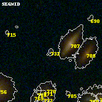 Object #732 x,y = (2974, 2393) RA, Dec = (01:42:52.152, 44:37:56.64) = (25.71730, 44.63240) BPZ = 1.069 [0.092--1.121] type = 9.70 (SB3_B10 - SB2_B10) chisq2 = 1.28 ODDS = 0.48 z_cluster = 0.341