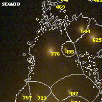 Object #776 x,y = (2443, 2673) RA, Dec = (01:42:55.128, 44:38:13.56) = (25.72970, 44.63710) BPZ = 0.415 [0.341--0.456] type = 5.30 (ES0_B10 - Sbc_B10) chisq2 = 0.02 ODDS = 0.89 z_cluster = 0.341