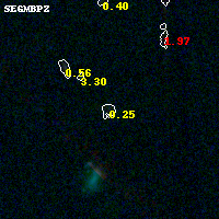 Object #789 x,y = (1267, 2300) RA, Dec = (01:43:01.728, 44:37:51.24) = (25.75720, 44.63090) BPZ = 0.251 [0.097--3.501] type = 9.10 (SB2_B10 - SB3_B10) chisq2 = 0.28 ODDS = 0.21 z_cluster = 0.341