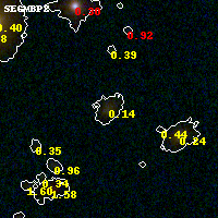 Object #81 x,y = (2236, 3603) RA, Dec = (01:42:56.280, 44:39:09.36) = (25.73450, 44.65260) BPZ = 0.136 [0.063--3.934] type = 3.80 (Ell4_A_0 - Ell5_A_0) chisq2 = 0.40 ODDS = 0.77 z_cluster = 0.341