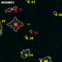 Object #82 x,y = (2253, 3675) RA, Dec = (01:42:56.184, 44:39:13.68) = (25.73410, 44.65380) BPZ = 0.916 [0.233--2.061] type = 9.70 (SB3_B10 - SB2_B10) chisq2 = 1.12 ODDS = 0.24 z_cluster = 0.341