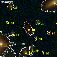 Object #825 x,y = (1768, 2231) RA, Dec = (01:42:58.920, 44:37:47.28) = (25.74550, 44.62980) BPZ = 2.105 [1.967--2.284] type = 5.00 (ES0_B10) chisq2 = 0.03 ODDS = 0.89 z_cluster = 0.341