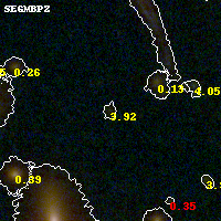 Object #838 x,y = (2058, 2226) RA, Dec = (01:42:57.288, 44:37:46.92) = (25.73870, 44.62970) BPZ = 3.919 [0.447--4.261] type = 8.90 (SB2_B10 - SB1_B10) chisq2 = 0.26 ODDS = 0.70 z_cluster = 0.341