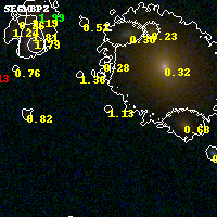 Object #839 x,y = (3030, 2231) RA, Dec = (01:42:51.816, 44:37:46.92) = (25.71590, 44.62970) BPZ = 1.126 [0.645--5.657] type = 2.40 (Ell6_A_0 - Ell5_A_0) chisq2 = 0.50 ODDS = 0.19 z_cluster = 0.341