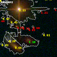 Object #85 x,y = (2583, 3594) RA, Dec = (01:42:54.336, 44:39:09.00) = (25.72640, 44.65250) BPZ = 4.827 [4.610--5.158] type = 11.00 (SB11_A_0_l) chisq2 = 2.21 ODDS = 0.90 z_cluster = 0.341