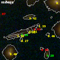Object #857 x,y = (2638, 2180) RA, Dec = (01:42:54.024, 44:37:44.04) = (25.72510, 44.62890) BPZ = 3.010 [1.386--3.408] type = 7.00 (Scd_B10) chisq2 = 0.38 ODDS = 0.40 z_cluster = 0.341