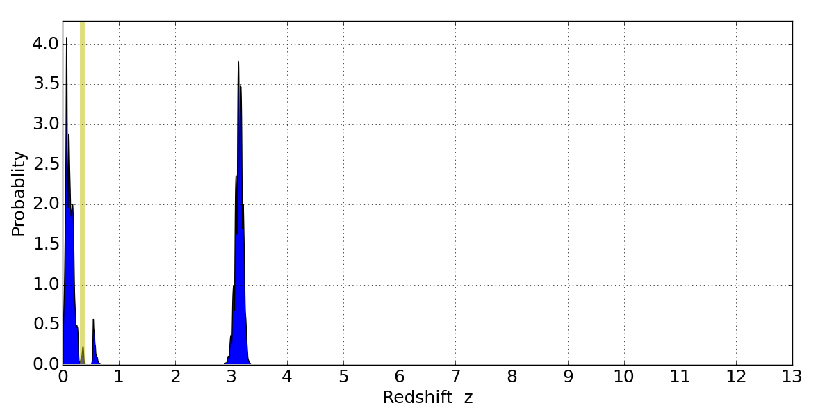 Best viewed in a wide browser window (1200 pixels or more). Download SED & P(z) plots to view larger versions.