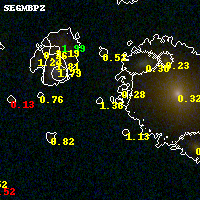 Object #888 x,y = (3004, 2262) RA, Dec = (01:42:51.984, 44:37:49.08) = (25.71660, 44.63030) BPZ = 1.359 [0.132--3.716] type = 9.80 (SB3_B10 - SB2_B10) chisq2 = 0.50 ODDS = 0.10 z_cluster = 0.341