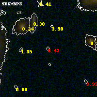 Object #919 x,y = (1811, 2104) RA, Dec = (01:42:58.680, 44:37:39.36) = (25.74450, 44.62760) BPZ = 0.422 [0.166--4.077] type = 9.80 (SB3_B10 - SB2_B10) chisq2 = 1.12 ODDS = 0.15 z_cluster = 0.341