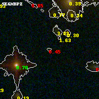 Object #933 x,y = (2256, 2072) RA, Dec = (01:42:56.184, 44:37:37.56) = (25.73410, 44.62710) BPZ = 0.449 [0.159--1.046] type = 9.80 (SB3_B10 - SB2_B10) chisq2 = 1.84 ODDS = 0.19 z_cluster = 0.341