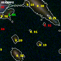 Object #95 x,y = (1987, 3547) RA, Dec = (01:42:57.696, 44:39:06.12) = (25.74040, 44.65170) BPZ = 0.911 [0.215--1.442] type = 9.30 (SB2_B10 - SB3_B10) chisq2 = 0.89 ODDS = 0.24 z_cluster = 0.341