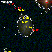 Object #975 x,y = (1957, 1946) RA, Dec = (01:42:57.864, 44:37:30.00) = (25.74110, 44.62500) BPZ = 0.299 [0.244--0.361] type = 8.60 (SB2_B10 - SB1_B10) chisq2 = 0.08 ODDS = 0.93 z_cluster = 0.341