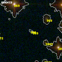 Object #988 x,y = (2089, 1956) RA, Dec = (01:42:57.120, 44:37:30.72) = (25.73800, 44.62520) BPZ = 2.923 [2.774--3.297] type = 10.30 (SB3_B10 - SB11_A_0_l) chisq2 = 0.65 ODDS = 0.64 z_cluster = 0.341