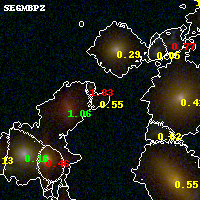 Object #990 x,y = (2826, 1937) RA, Dec = (01:42:52.968, 44:37:29.28) = (25.72070, 44.62480) BPZ = 0.547 [0.418--1.773] type = 5.50 (Sbc_B10 - ES0_B10) chisq2 = 0.52 ODDS = 0.23 z_cluster = 0.341