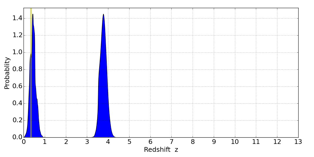 Best viewed in a wide browser window (1200 pixels or more). Download SED & P(z) plots to view larger versions.