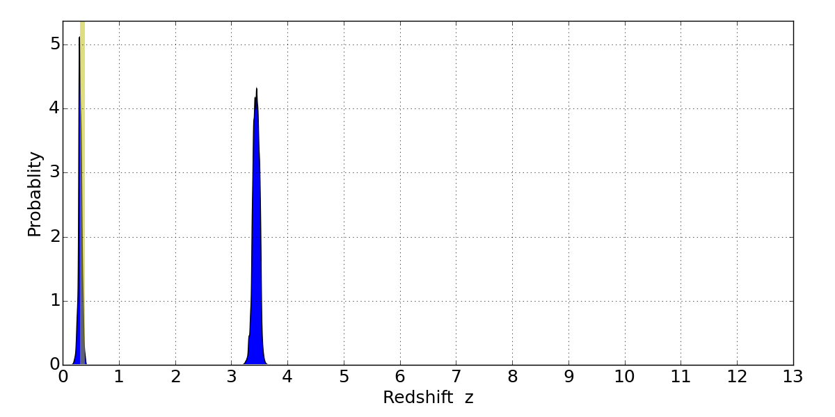 Best viewed in a wide browser window (1200 pixels or more). Download SED & P(z) plots to view larger versions.