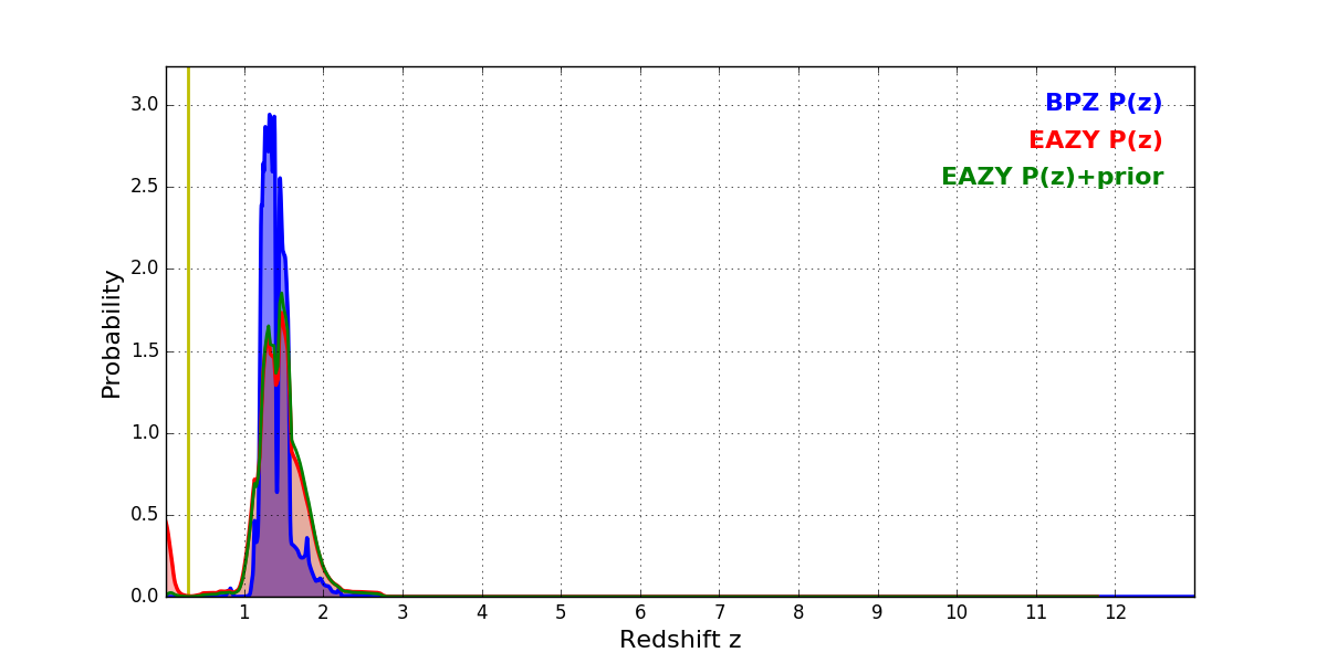 In P(z) plots: Yellow lines mark the cluster redshift z = 0.284,