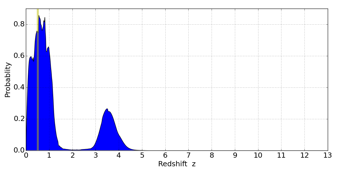 Best viewed in a wide browser window (1200 pixels or more). Download SED & P(z) plots to view larger versions.