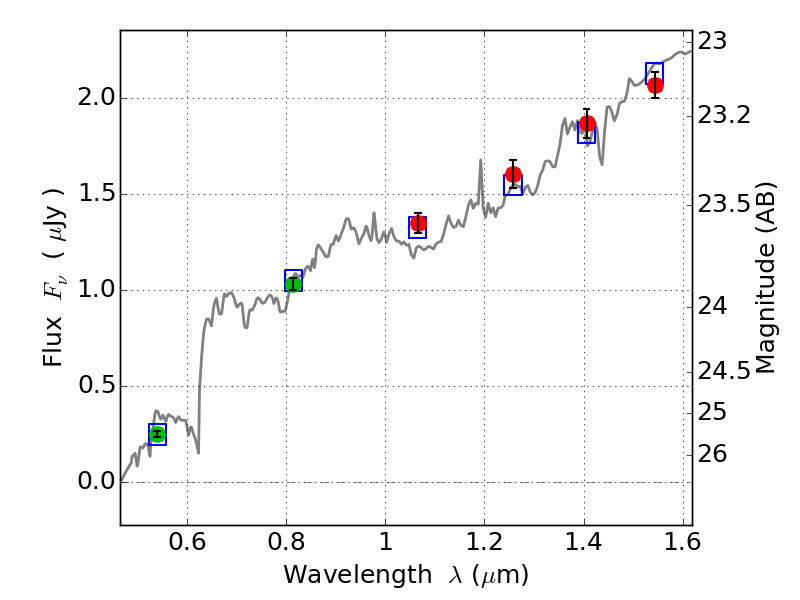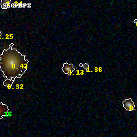 Object #14 x,y = (2743, 3528) RA, Dec = (09:11:11.592, 17:47:57.84) = (137.79830, 17.79940) BPZ = 4.132 [0.317--4.239] type = 7.40 (Scd_B10 - SB1_B10) chisq2 = 0.13 ODDS = 0.76 z_cluster = 0.505
