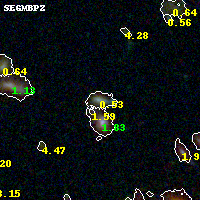 Object #249 x,y = (3476, 2710) RA, Dec = (09:11:08.496, 17:47:08.88) = (137.78540, 17.78580) BPZ = 0.532 [0.490--3.906] type = 9.20 (SB2_B10 - SB3_B10) chisq2 = 0.55 ODDS = 0.26 z_cluster = 0.505