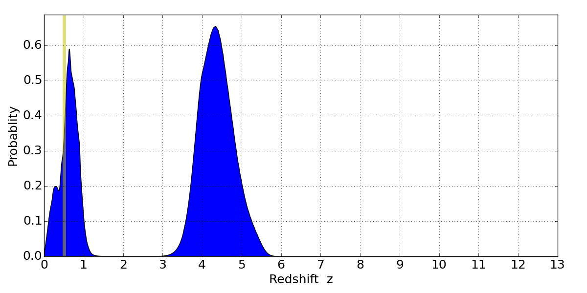 Best viewed in a wide browser window (1200 pixels or more). Download SED & P(z) plots to view larger versions.