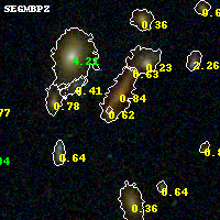 Object #287 x,y = (2362, 2607) RA, Dec = (09:11:13.176, 17:47:02.76) = (137.80490, 17.78410) BPZ = 0.625 [0.369--1.253] type = 6.10 (Sbc_B10 - Scd_B10) chisq2 = 0.18 ODDS = 0.27 z_cluster = 0.505