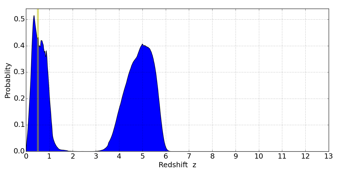 Best viewed in a wide browser window (1200 pixels or more). Download SED & P(z) plots to view larger versions.