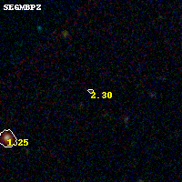 Object #33 x,y = (2432, 3402) RA, Dec = (09:11:12.888, 17:47:50.28) = (137.80370, 17.79730) BPZ = 2.304 [0.320--3.464] type = 8.60 (SB2_B10 - SB1_B10) chisq2 = 0.35 ODDS = 0.14 z_cluster = 0.505