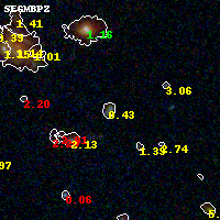 Object #34 x,y = (2658, 3394) RA, Dec = (09:11:11.952, 17:47:49.92) = (137.79980, 17.79720) BPZ = 0.434 [0.184--3.649] type = 9.10 (SB2_B10 - SB3_B10) chisq2 = 0.22 ODDS = 0.34 z_cluster = 0.505