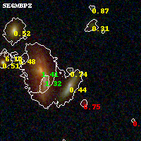 Object #369 x,y = (3351, 2493) RA, Dec = (09:11:09.024, 17:46:55.92) = (137.78760, 17.78220) BPZ = 0.740 [0.133--3.815] type = 9.10 (SB2_B10 - SB3_B10) chisq2 = 0.04 ODDS = 0.19 z_cluster = 0.505