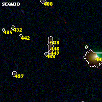 Object #447 x,y = (3888, 2374) RA, Dec = (09:11:06.768, 17:46:48.72) = (137.77820, 17.78020) BPZ = 1.602 [0.940--2.561] type = 6.80 (Scd_B10 - Sbc_B10) chisq2 = 1.14 ODDS = 0.22 z_cluster = 0.505