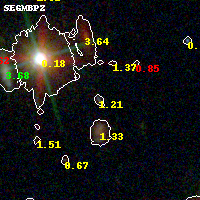 Object #529 x,y = (3655, 2280) RA, Dec = (09:11:07.752, 17:46:42.96) = (137.78230, 17.77860) BPZ = 1.208 [0.153--3.422] type = 9.60 (SB3_B10 - SB2_B10) chisq2 = 0.87 ODDS = 0.21 z_cluster = 0.505