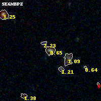 Object #57 x,y = (2433, 3279) RA, Dec = (09:11:12.888, 17:47:43.08) = (137.80370, 17.79530) BPZ = 0.649 [0.565--3.798] type = 8.60 (SB2_B10 - SB1_B10) chisq2 = 0.20 ODDS = 0.59 z_cluster = 0.505