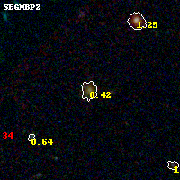 Object #58 x,y = (2288, 3272) RA, Dec = (09:11:13.488, 17:47:42.72) = (137.80620, 17.79520) BPZ = 0.420 [0.336--0.535] type = 3.00 (Ell5_A_0) chisq2 = 0.16 ODDS = 0.77 z_cluster = 0.505