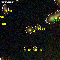 Object #627 x,y = (2480, 2123) RA, Dec = (09:11:12.696, 17:46:33.60) = (137.80290, 17.77600) BPZ = 0.413 [0.342--0.458] type = 3.60 (Ell4_A_0 - Ell5_A_0) chisq2 = 0.17 ODDS = 0.93 z_cluster = 0.505