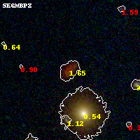 Object #68 x,y = (2596, 3208) RA, Dec = (09:11:12.192, 17:47:38.76) = (137.80080, 17.79410) BPZ = 1.645 [1.520--5.942] type = 5.20 (ES0_B10 - Sbc_B10) chisq2 = 0.50 ODDS = 0.88 z_cluster = 0.505