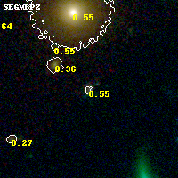 Object #772 x,y = (4203, 1830) RA, Dec = (09:11:05.448, 17:46:15.96) = (137.77270, 17.77110) BPZ = 0.553 [0.103--3.661] type = 8.70 (SB2_B10 - SB1_B10) chisq2 = 0.13 ODDS = 0.18 z_cluster = 0.505