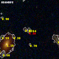 Object #807 x,y = (3270, 1739) RA, Dec = (09:11:09.384, 17:46:10.56) = (137.78910, 17.76960) BPZ = 0.641 [0.327--4.116] type = 8.40 (SB1_B10 - SB2_B10) chisq2 = 0.13 ODDS = 0.26 z_cluster = 0.505