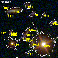 Object #1004 x,y = (3713, 1358) RA, Dec = (09:49:47.712, 17:06:12.96) = (147.44880, 17.10360) BPZ = 2.359 [1.883--2.937] type = 9.20 (SB2_B10 - SB3_B10) chisq2 = 0.04 ODDS = 0.38 z_cluster = 0.383