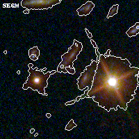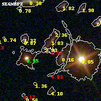 Object #1014 x,y = (3703, 1323) RA, Dec = (09:49:47.736, 17:06:10.80) = (147.44890, 17.10300) BPZ = 1.585 [1.311--1.973] type = 8.40 (SB1_B10 - SB2_B10) chisq2 = 1.45 ODDS = 0.49 z_cluster = 0.383
