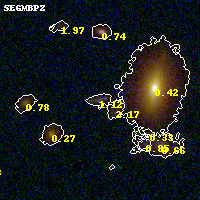 Object #122   x,y = (2561, 3112)   RA, Dec = (09:49:52.536, 17:07:58.08) = (147.46890, 17.13280)   BPZ = 1.119 [1.081--1.694]   type = 9.60 (SB3_B10 - SB2_B10)   chisq2 = 0.52   ODDS = 0.38   z_cluster = 0.383