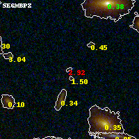 Object #197   x,y = (2674, 2949)   RA, Dec = (09:49:52.056, 17:07:48.36) = (147.46690, 17.13010)   BPZ = 2.922 [0.154--3.598]   type = 9.60 (SB3_B10 - SB2_B10)   chisq2 = 1.58   ODDS = 0.15   z_cluster = 0.383