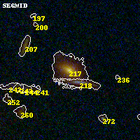 Object #217   x,y = (2726, 2870)   RA, Dec = (09:49:51.840, 17:07:43.68) = (147.46600, 17.12880)   BPZ = 0.348 [0.257--0.394]   type = 2.90 (Ell5_A_0 - Ell6_A_0)   chisq2 = 0.08   ODDS = 0.79   z_cluster = 0.383