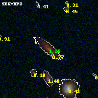 Object #270 x,y = (3187, 2782) RA, Dec = (09:49:49.896, 17:07:38.28) = (147.45790, 17.12730) BPZ = 1.255 [1.186--1.352] type = 7.20 (Scd_B10 - SB1_B10) chisq2 = 0.05 ODDS = 0.96 z_cluster = 0.383