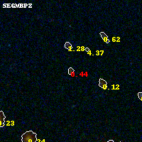 Object #279 x,y = (3772, 2792) RA, Dec = (09:49:47.448, 17:07:39.00) = (147.44770, 17.12750) BPZ = 0.443 [0.212--4.109] type = 9.50 (SB3_B10 - SB2_B10) chisq2 = 1.11 ODDS = 0.20 z_cluster = 0.383