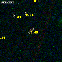 Object #352 x,y = (4295, 2636) RA, Dec = (09:49:45.264, 17:07:29.64) = (147.43860, 17.12490) BPZ = 0.447 [0.286--0.692] type = 8.50 (SB2_B10 - SB1_B10) chisq2 = 0.50 ODDS = 0.51 z_cluster = 0.383