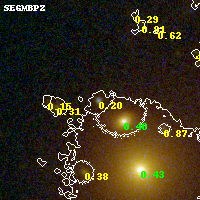 Object #437 x,y = (2405, 2485) RA, Dec = (09:49:53.184, 17:07:20.28) = (147.47160, 17.12230) BPZ = 0.204 [0.135--3.383] type = 7.20 (Scd_B10 - SB1_B10) chisq2 = 0.18 ODDS = 0.40 z_cluster = 0.383