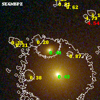 Object #440 x,y = (2430, 2464) RA, Dec = (09:49:53.064, 17:07:19.20) = (147.47110, 17.12200) BPZ = 0.398 [0.359--0.457] type = 5.20 (ES0_B10 - Sbc_B10) chisq2 = 0.02 ODDS = 0.97 z_cluster = 0.383